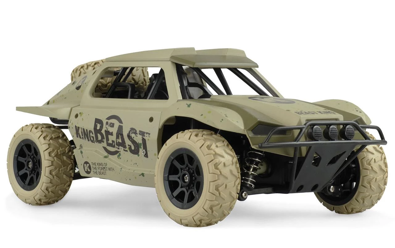 Fahrzeugtyp: Buggy, Antrieb: 4×4, Antriebsart: Elektro Brushed, Modellausführung: RTR (Ready to Run), Benötigt zur Fertigstellung: Batterien für Sender, Detailfarbe: Sand
