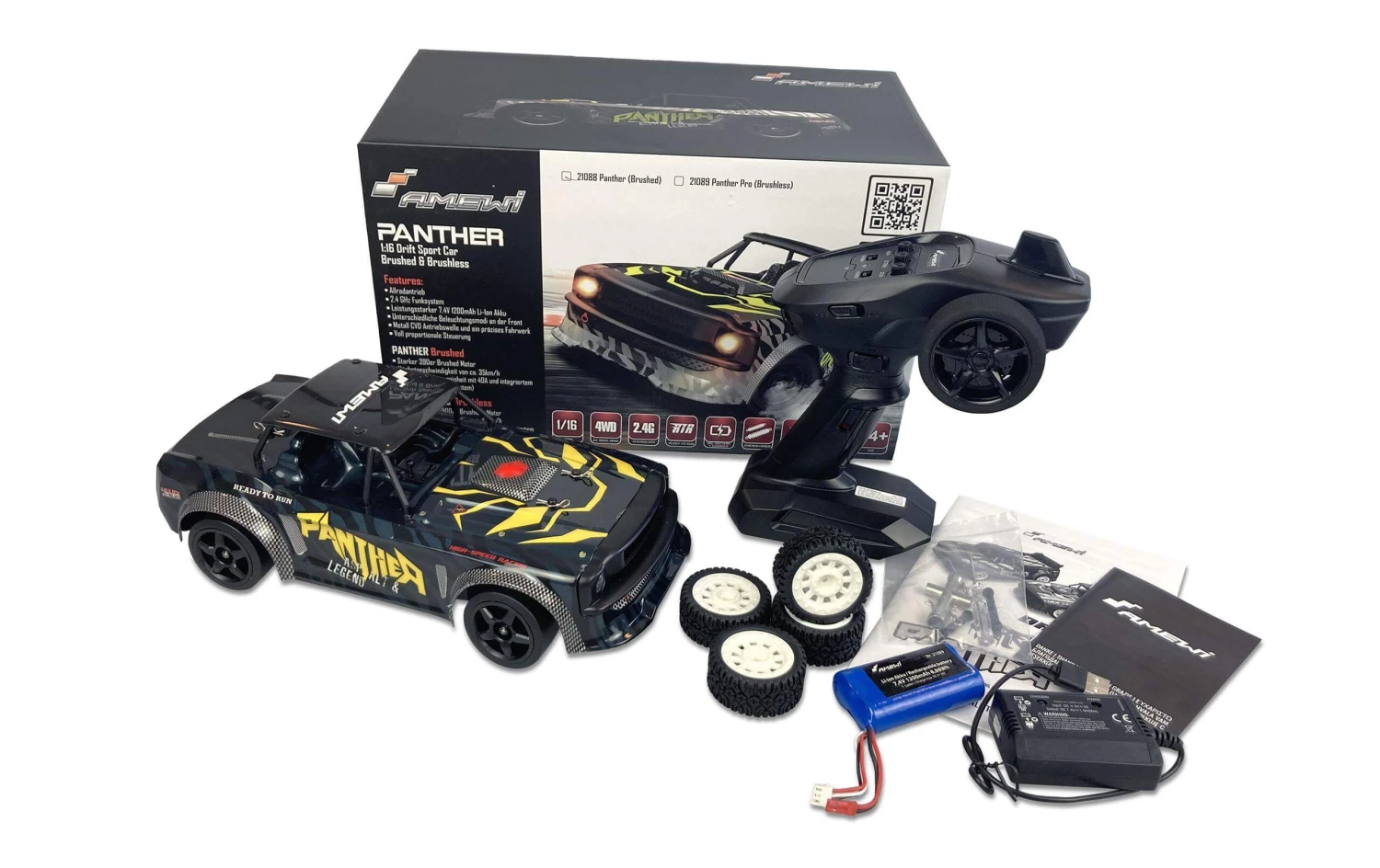 Fahrzeugtyp: Drift, Antrieb: 4×4, Antriebsart: Elektro Brushless, Modellausführung: RTR (Ready to Run), Detailfarbe: Schwarz, Schwierigkeitsgrad: 1. Einsteiger