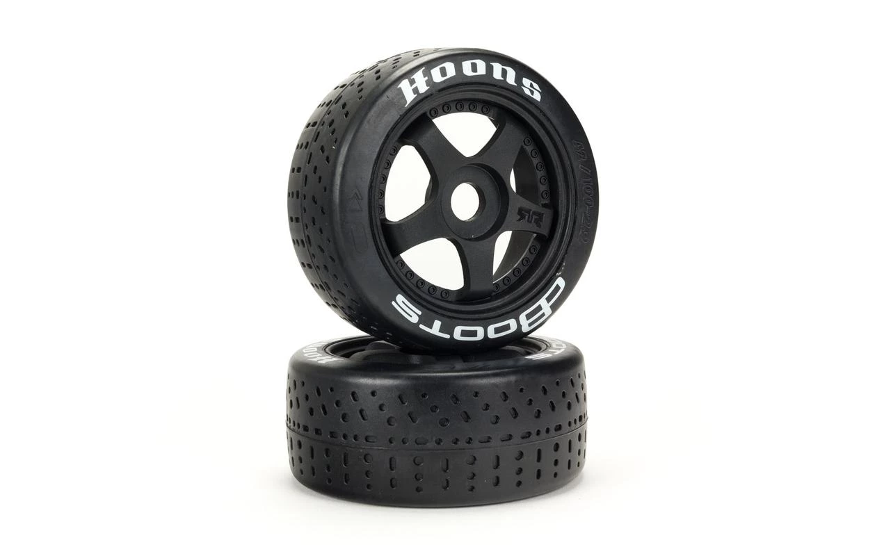 – 2 schwarze 5-Speichenfelgen mit verklebten dBoots Hoons-Reifen