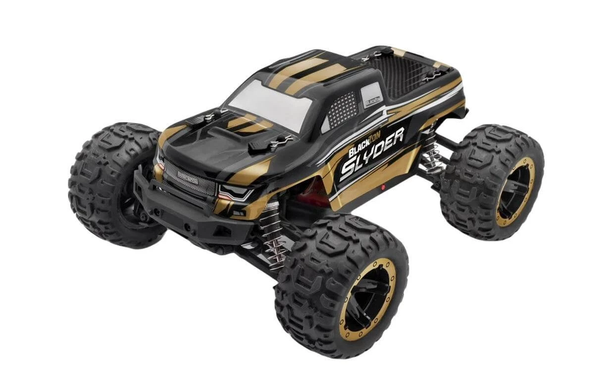 Fahrzeugtyp: Monster Truck, Antrieb: 4×4, Antriebsart: Elektro Brushed, Modellausführung: RTR (Ready to Run), Benötigt zur Fertigstellung: USB Charger, Detailfarbe: Gold