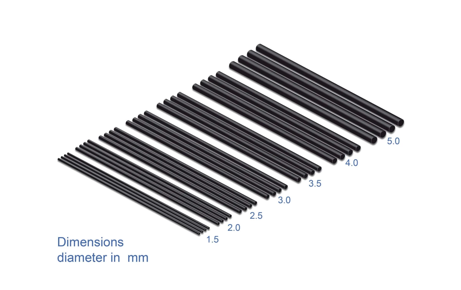 Breite: 4 mm, 2 mm, 3.5 mm, 3 mm, 1.5 mm, 5 mm, Länge: 0.1 m, Durchmesser: 3 mm, 4 mm, 2 mm, 3.5 mm, 1.5 mm, 5 mm, Material: Polyolefin