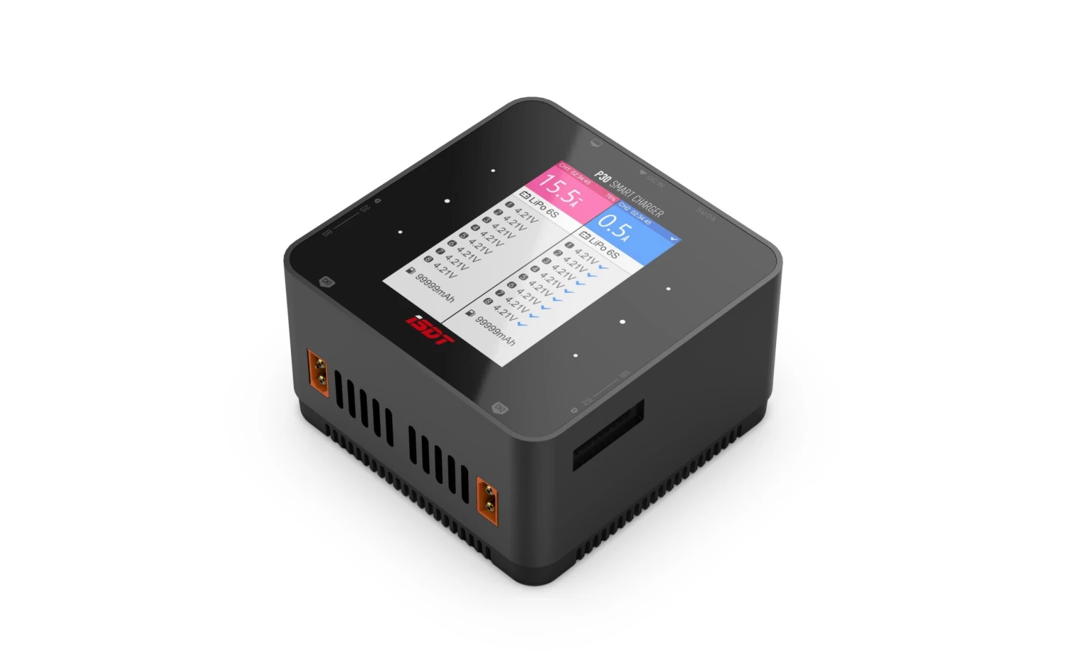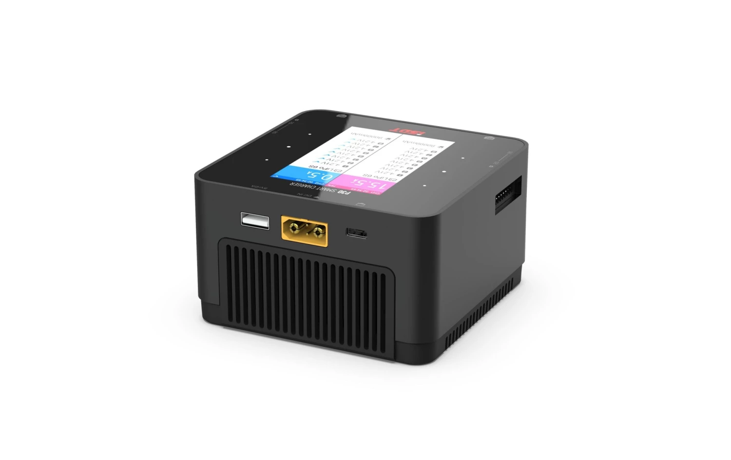 – Kompatible Akkutypen: Lithium-Eisen (Li-Fe); Lithium-Ion (Li-Ion); Lithium-Polymer (LiPo); Lithium-Polymer (LiHV); Nickel-Metallhydrid (NiMH); Blei (Pb)