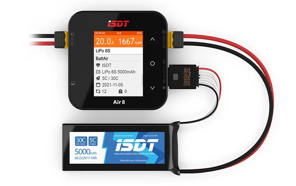 – Kompatible Akkutypen: 1-8S LiPo, LiFe, Li-IOn, LiHV, 1-12S Blei (Pb), 1-16 Zellen NiMH, NiCd