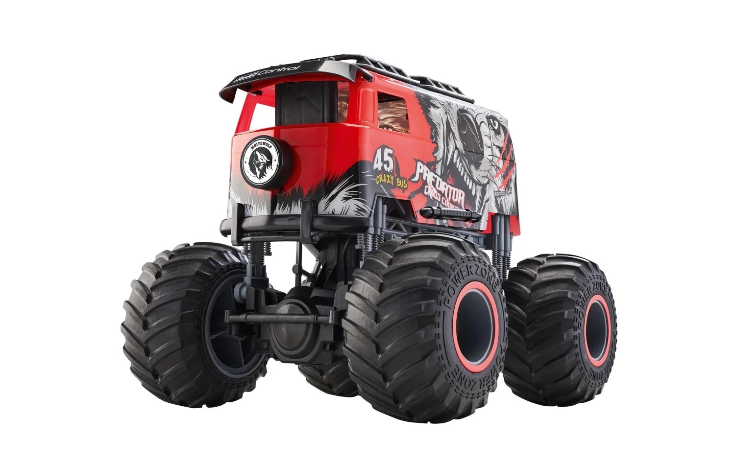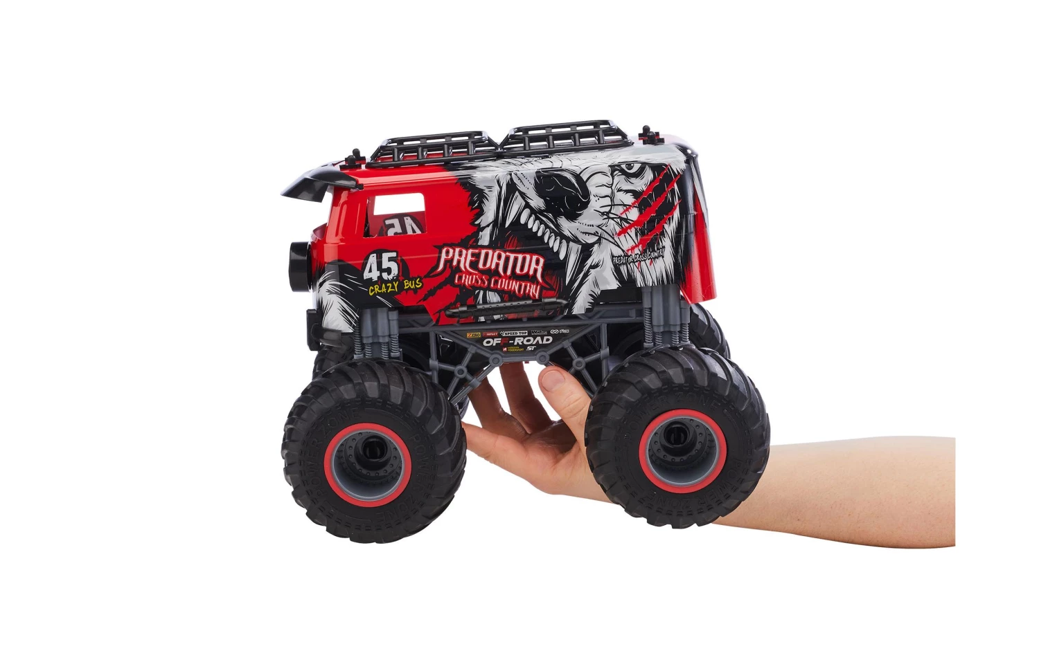 Fahrzeugtyp: Monster Truck, Antrieb: 2WD, Antriebsart: Elektro Brushed, Modellausführung: RTR (Ready to Run), Benötigt zur Fertigstellung: Batterien für Sender, Detailfarbe: Rot