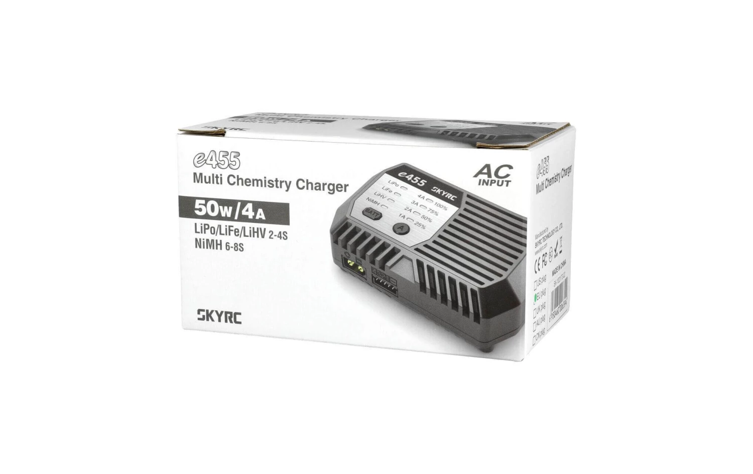 Akkutyp: Nickel-Metallhydrid (NiMH), Lithium-Eisen (Li-Fe), Lithium-Polymer (LiPo), Lithium-Polymer (LiHV), Ladeleistung: 50 W, Maximaler Ladestrom: 4 A, Anzahl Ausgänge: 1 ×, Max. LiPo-Zellen: 4, Ladegerät/Akku Combo: Nein