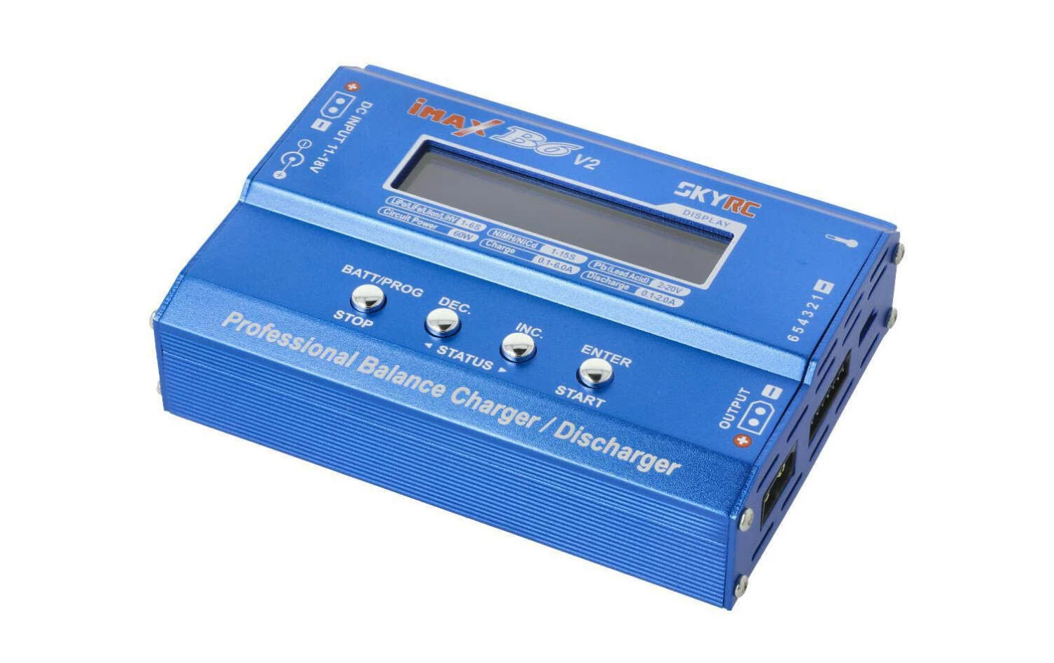 – Kompatible Akkutypen: Lithium-Polymer (LiPo); Lithium-Polymer (LiHV); Nickel-Metallhydrid (NiMH); Nickel-Kadmium (NiCd); Lithium-Eisen (Li-Fe); Lithium-Ion (Li-Ion); Blei (Pb)